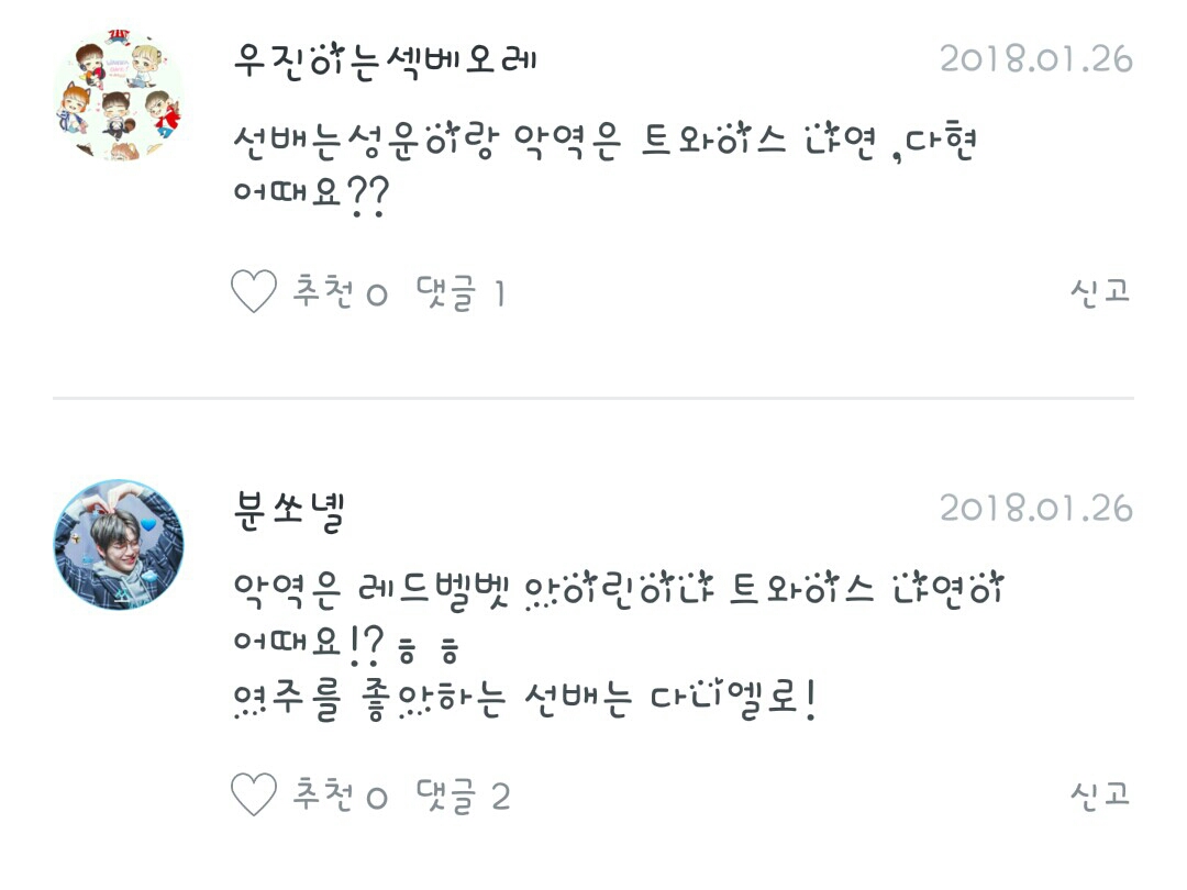 여러가지 소식들은 대부분 전달드린것 같고 마지막으로 알려드릴것은 ???은 하성운이고 @@@은 다니엘 이란 점입니다. 그럼이만