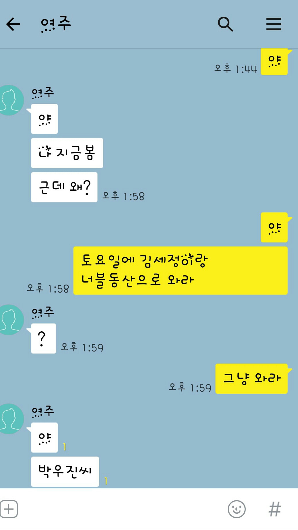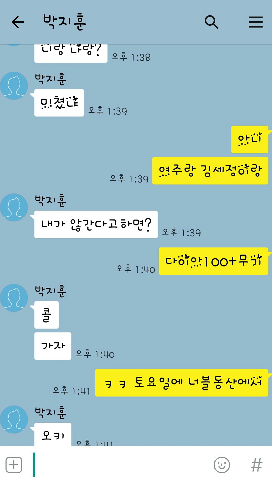 그럼 토요일에 너블동산으로 와라 11시