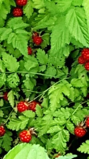 숲속으로 들어가자 산딸기나무가 잔뜩있고 열매가 가득이다