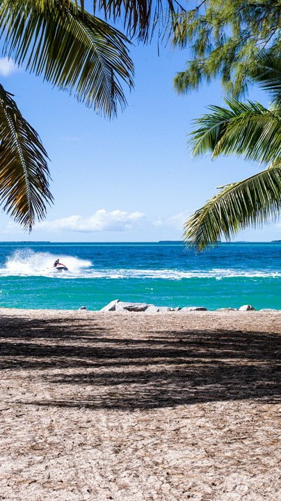 뜨거운 보라카이에서 강렬하게 내리 째는 태양 아래서.