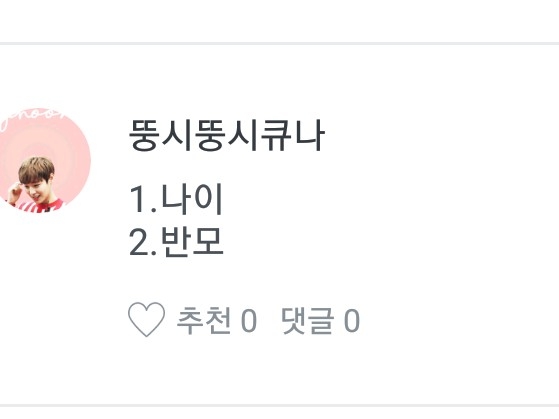 1.나이는 16살 이에영2.반모 받아영 3,4,5번은 위에 써놨어영 6.당연히 보구 있죠♡♡7.저두 사링해영♡♡♡♡