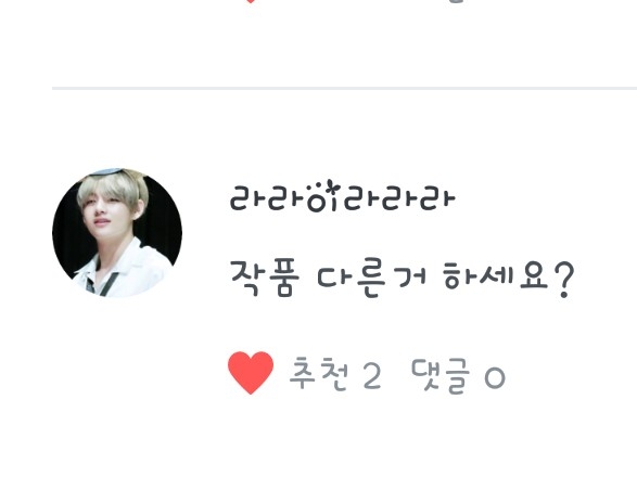 라라이라라라님의 질문! 현재 다른작품은 연재를 안하고 있고요. '일진들과 나'가 완결이 나면 시즌 2나 다른작품을 연재할 생각입니다.