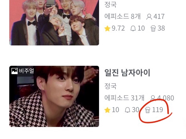“어디…. 아. 어, 걘데? 전정국.”