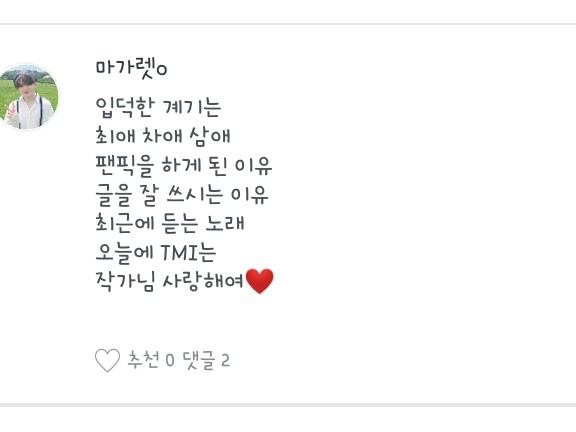 1. 입덕계기는...동영상 보다가 2. 호시(세븐틴 . 세븐틴)슈아 . 웅(AB6IX) 3. 친구시키들이 해서 궁금해서 글을 써봤다가 이렇게(?) 된겄이에요 4. 오메오메 저 글 못쓰는데...제 친구시키가 어 잘쓰거든요(이유:진지한글 못써서)
