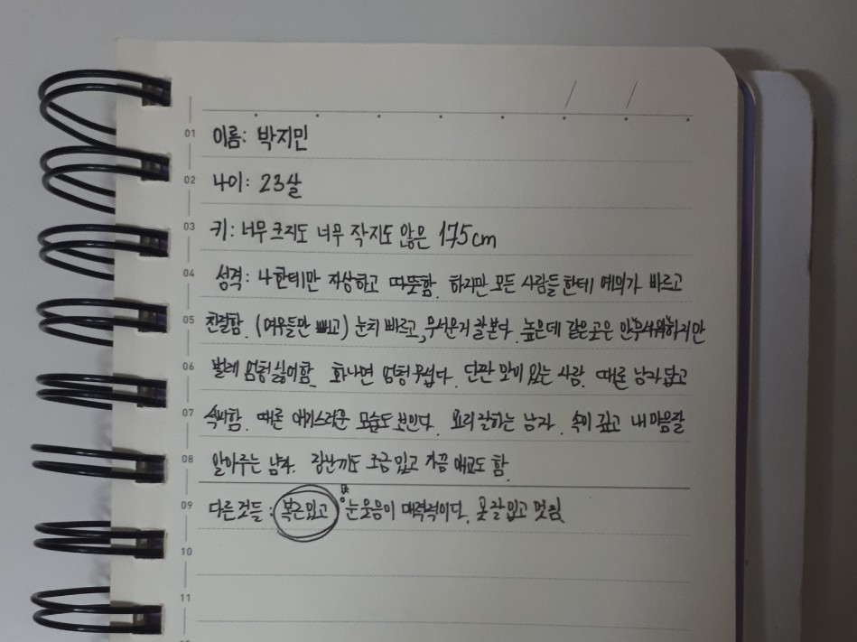 아무튼 집에 가자마자 공책에 '오글거리는 멘트 잘 날리는 남자' 라고 썼는지 한번 찾아 봐야겠다.