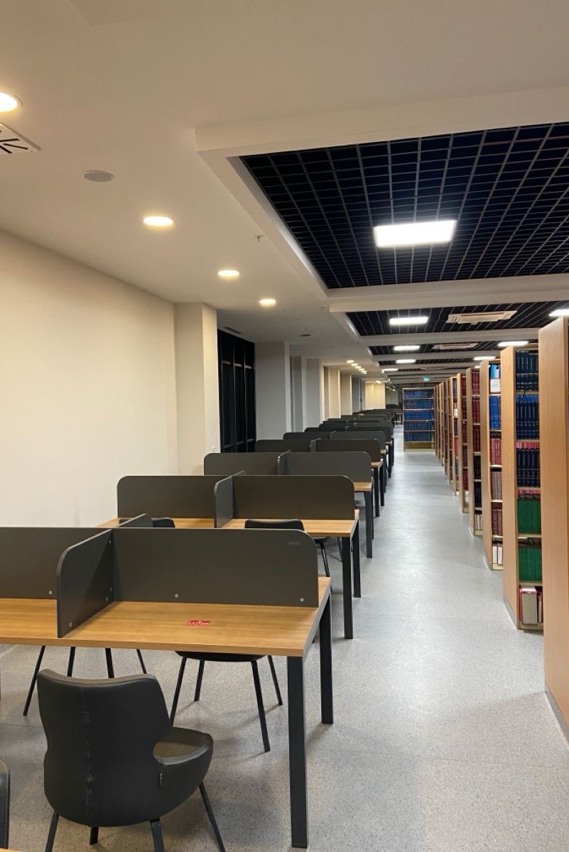 나는 학교 도서관에서 공부 중인