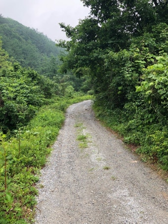 정제되어 있지 않은 길을 달리는 차.