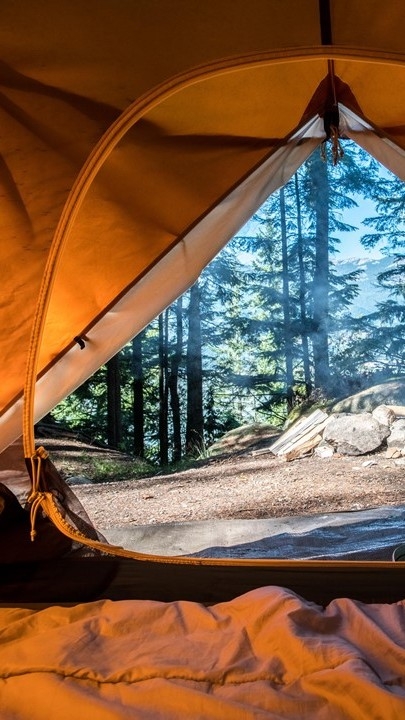 아침 바람을 쐬러 절뚝거리며 텐트 밖으로 나왔다.