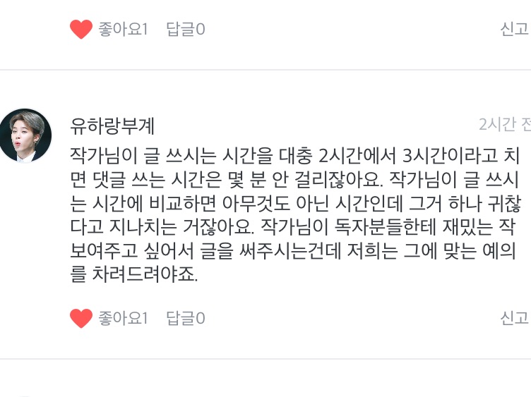 제가 영어로 많이 써서 시간을 많이 잡아먹는데 ..작가를 위해 1분만 투자 어때여 ??ㅎㅎ 좋은 댓글 감사해여 ㅎ