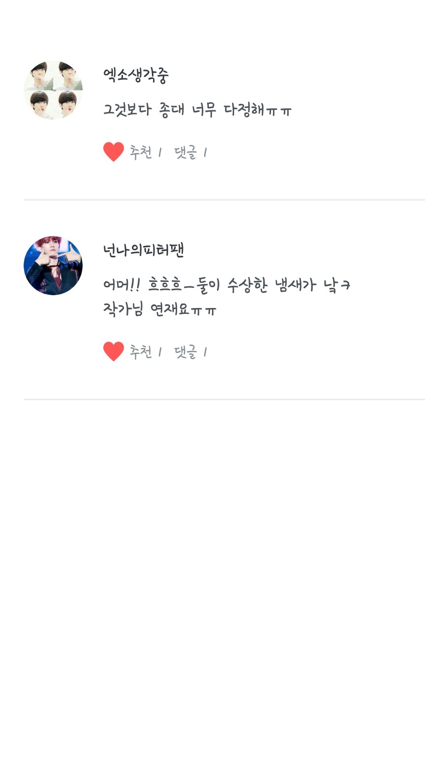 엑소생각중님 , 넌나의피터팬님 댓 정말 감사해요 ♡ 어제 못 올린것도 있구 댓 남겨주신 두분 감사해서 빨리 쓴거에욥 !