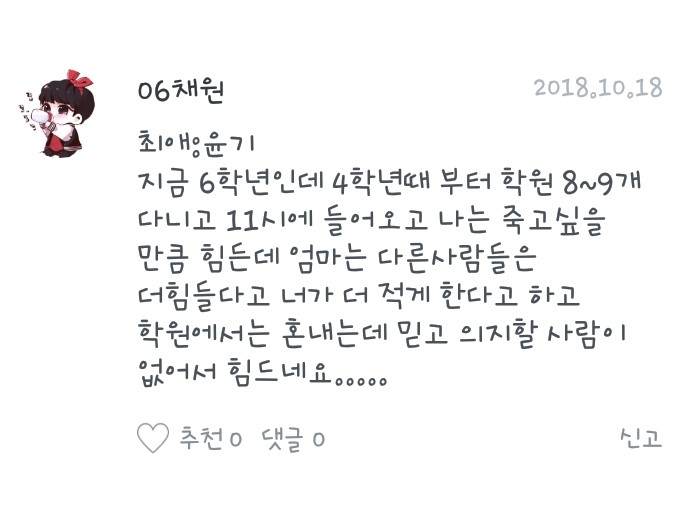 부모님이 학원을 꼭 줄여줬으면 좋겠어요 . 안 힘들게