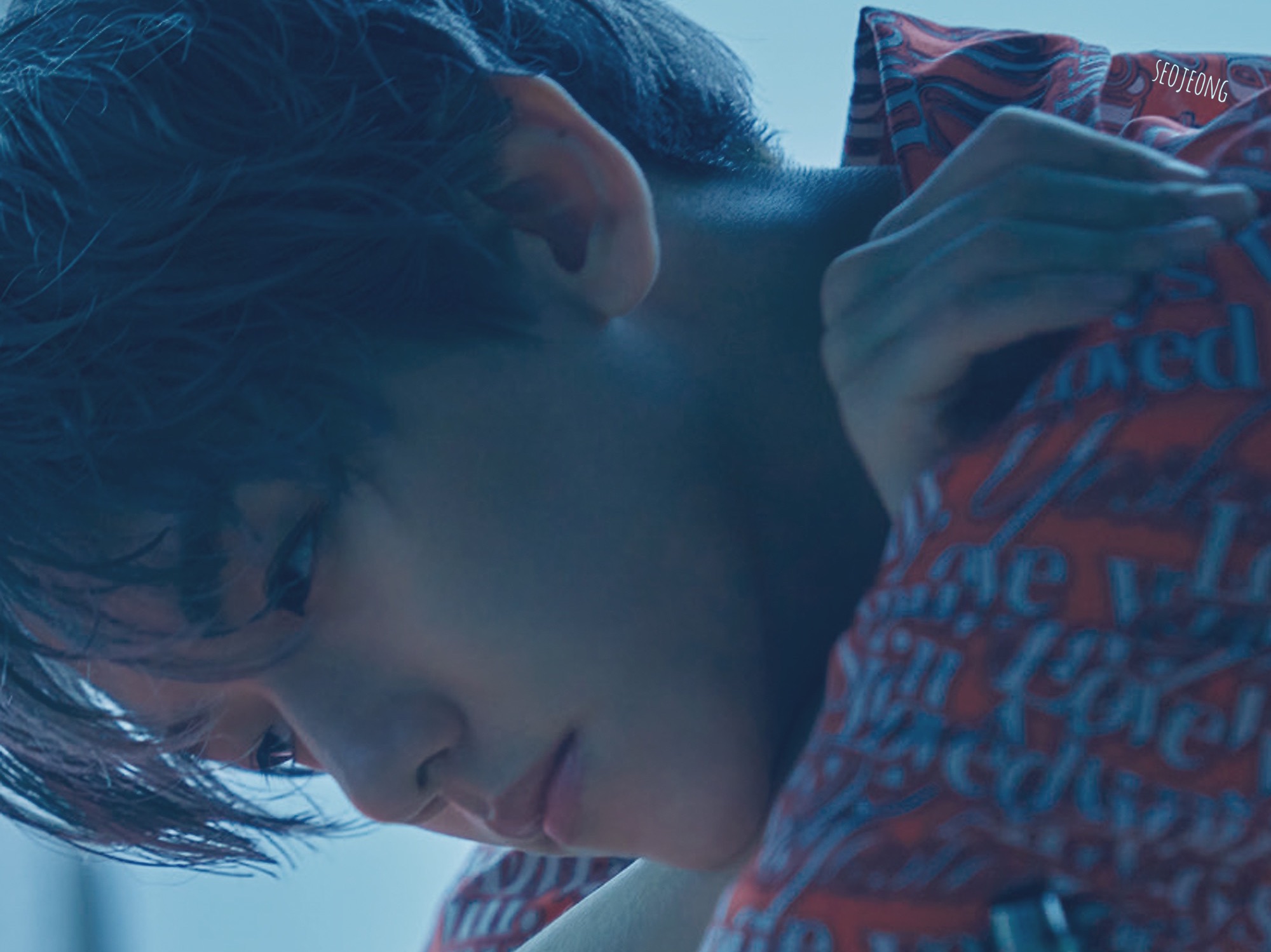 -백현이 창가에 앉아, 팔을 베고 엎드린다.