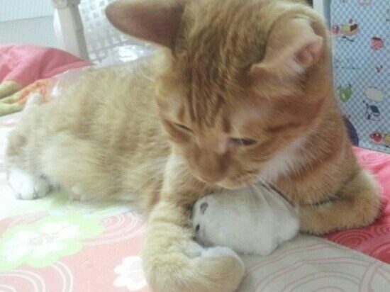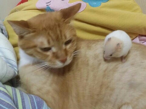 순영이도 갑작스럽게 들린 고양이 소리에 여주한테 뛰어갔다. 그렇게 해서 의도치 않게 고양이랑 햄스터의 대치상황(?)