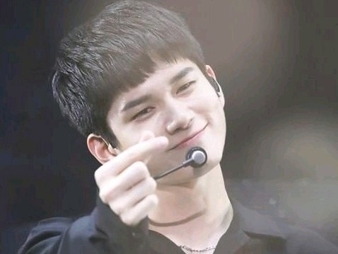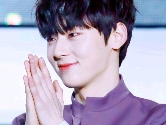 빨개진 귀를 비비며 살짝 미소를 보이는 박우진...