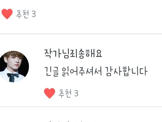 그리고... 저를 처음보시는분들이 댓달아주시는거 정말 너무 감사한데 댓글을 다실때 제발 생각하고 달아주세요, 너무 짧다는둥 에피소드가 재미없다는 둥 기분 안좋은 댓이 좀 많더라고요.