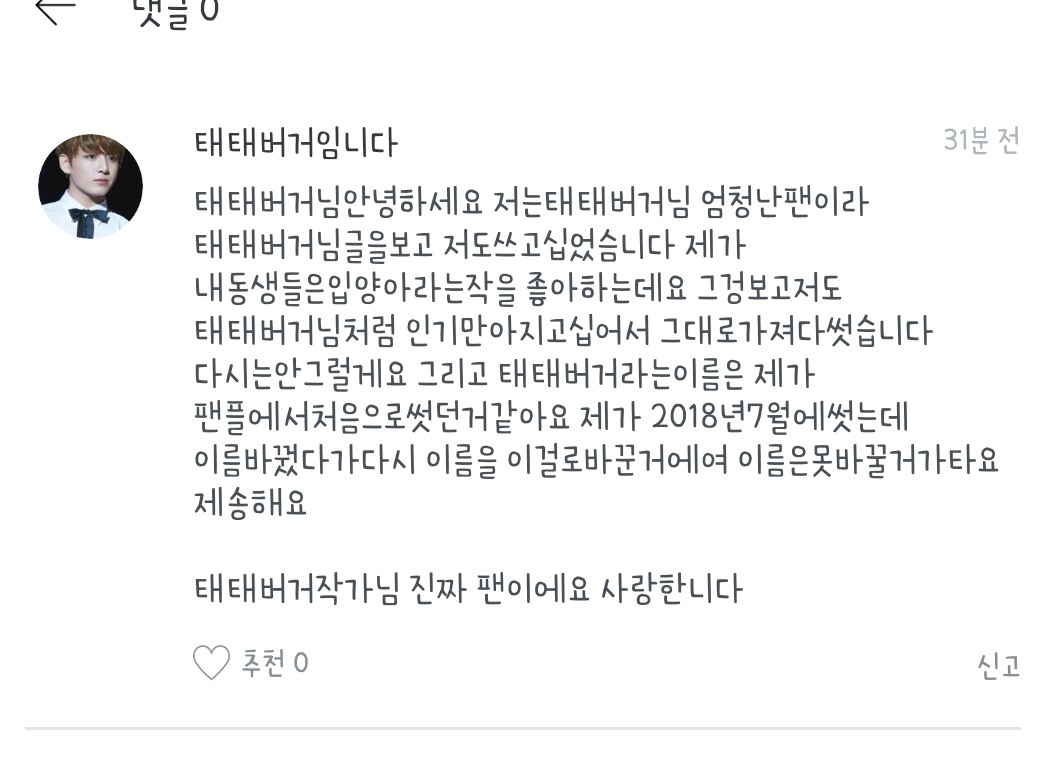 제 팬이라고 하셨죠? 인기많아지고 싶으시다고 제 작품 제목과 내용을 마음대로 가져가 쓰시는건 범죄에요 범죄. 것도 제 팬이시라면 이러는거 아니에요