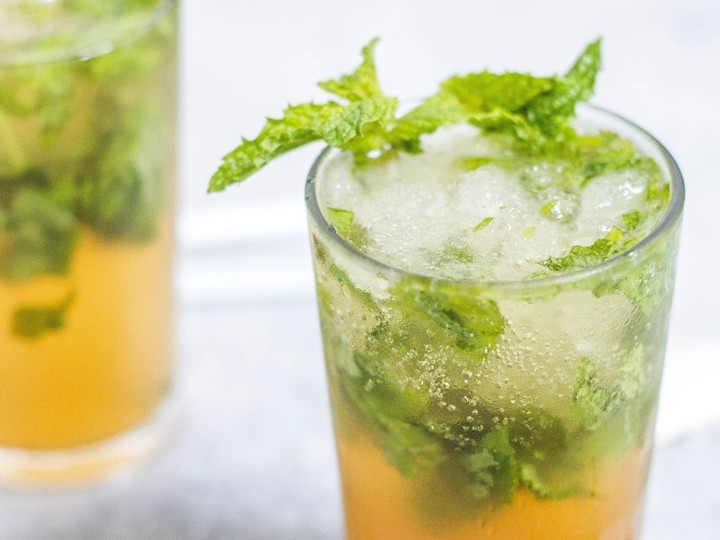 윤이는 냉장고에서 이것저것 꺼내더니 감귤 깻잎 모히토를 만들었다.