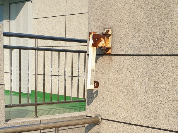 여기 완강기 말이에요... 오래되어서 녹이 쓸어서 지난번에는 눈에 안 띄었는데.. 여기 좀 보세요. 최근에 사용한 것 처럼 여기만 녹이 닦였습니다.