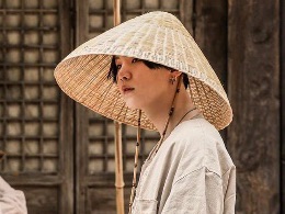 삿갓으로 얼굴을 가리고는 아래로 내려갔다 .