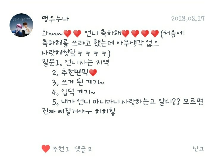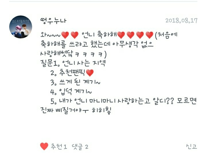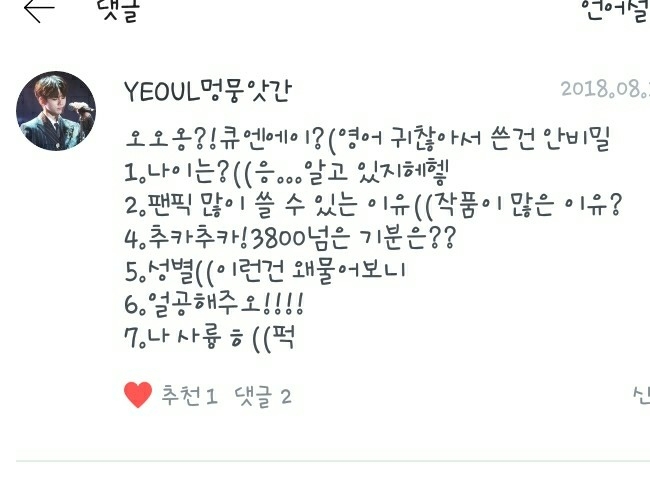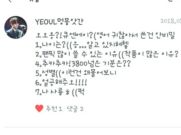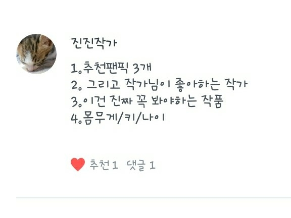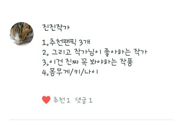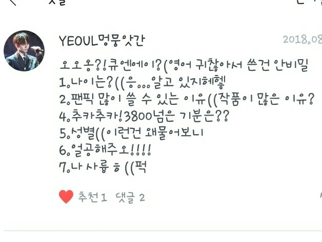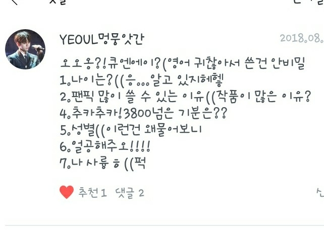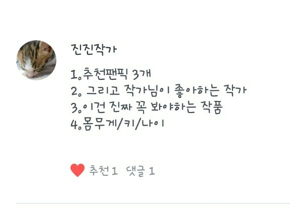 2. 제가 좋아하는 작가님은 작가이신 제 독자님들과 제 추천팬픽의 작가님들입니다!