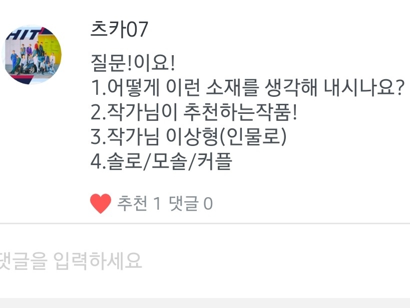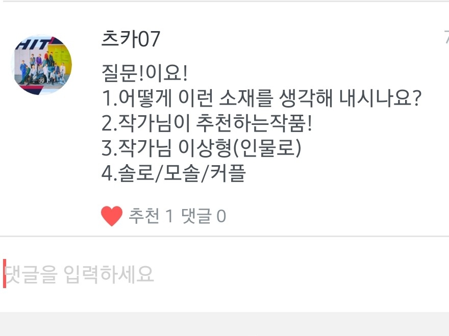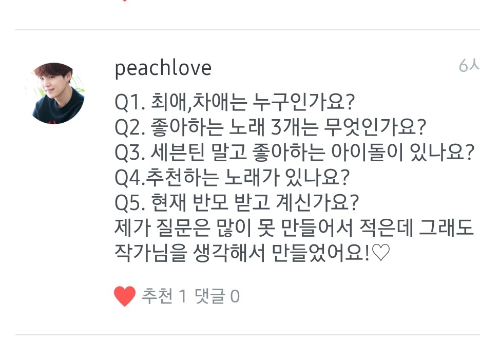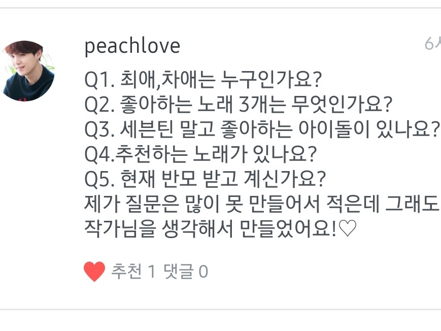 1.최애는 조슈아님! 차애는 승관님이요! 2.빅톤-오월애,세븐틴 (보컬팀)-나에게로 와,위너-공허해 좋아해요! 3.위너,엑스원 좋아해요! 근데 아이돌 다 좋아요!