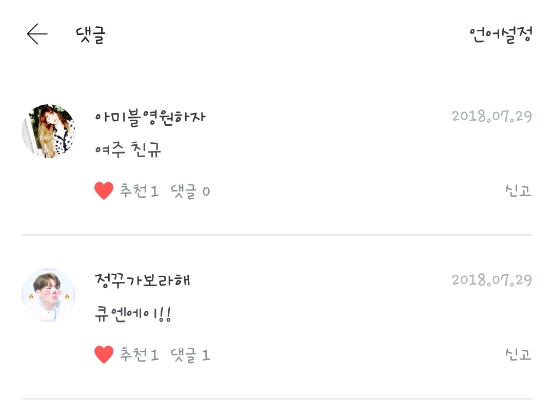 1번 아미블 영원하자 2번 정꾸기보라해