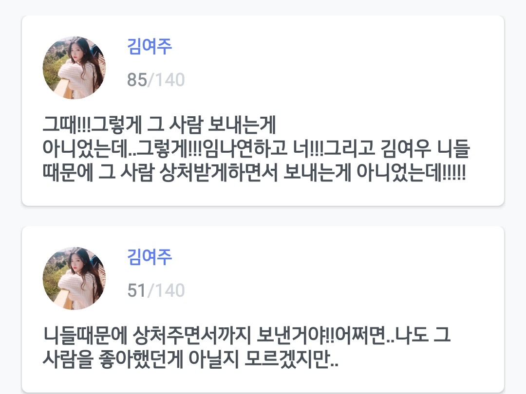 그때 솔직히 우리 사이 안 좋았던거 맞고 너하고 김누리하고 임나연 안나타났으면 그때 순영오빠 끌고 가지도 않았어