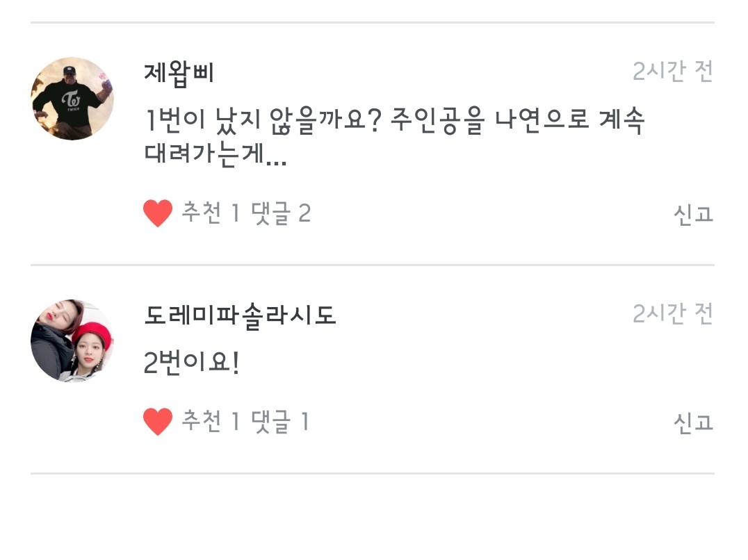 보슬 님, 세룡 님이 2번을 택해주신 관계로!