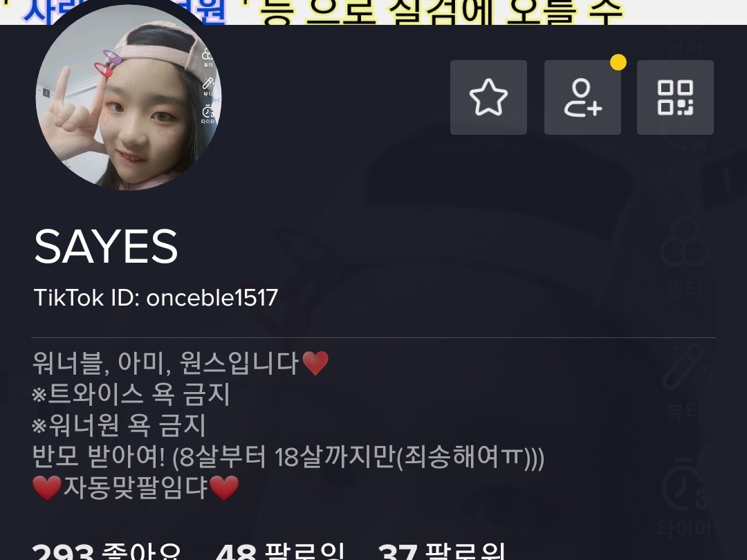 그래두 틱톡 없으신분들을 위해서... 저 않닮은 제 셀카를 보여드리겠슴당!!(?)