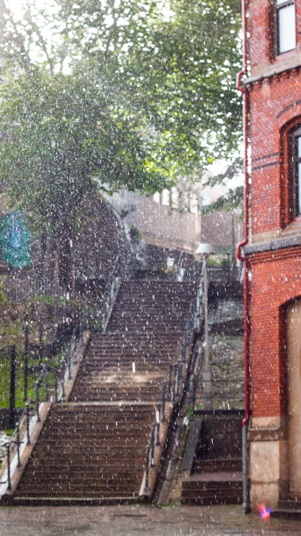 나는 여주를 끌어당겼고 우리는 함께 세찬 빗속을 뛰어갔다.