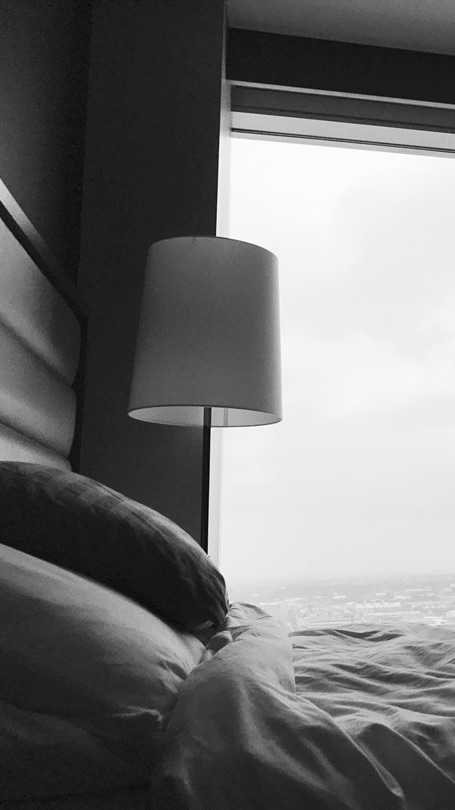 -백현이 침대에서 일어나, 방을 나간다.
