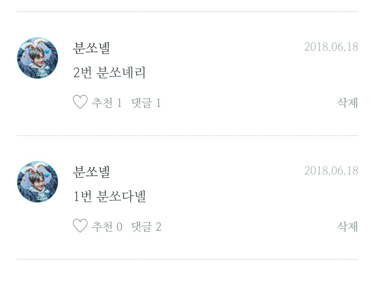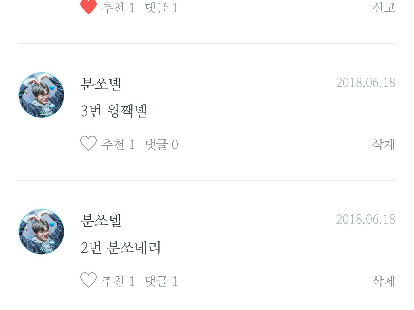 예)1번을 하시고 싶다.! 그러시면 1번 댓글에 가서 답장으로 1번이여!