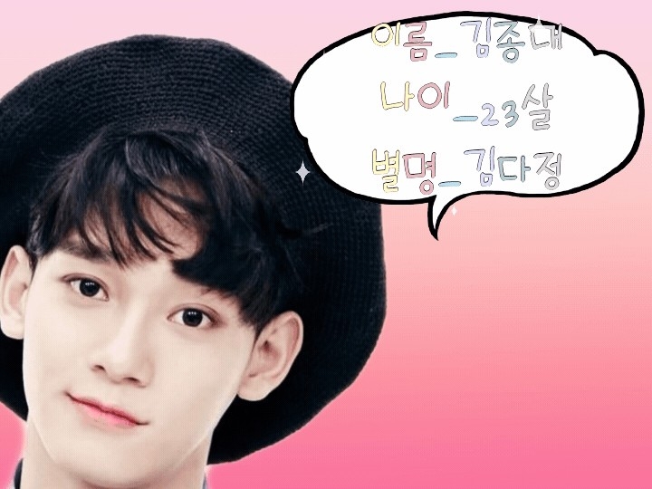 이름_김종대(첸) 나이_23살 별명_죤대,김다정(등) 특징_다정함, 목소리가 높음.