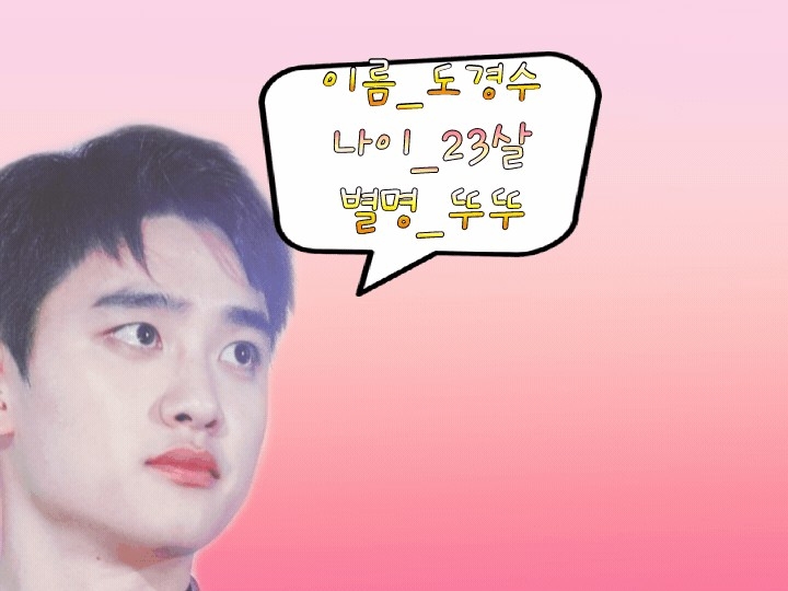 이름_도경수(디오) 나이_23살 별명_뚜뚜,됴리사(등) 특징_츤데레(?), 여주를 아낌