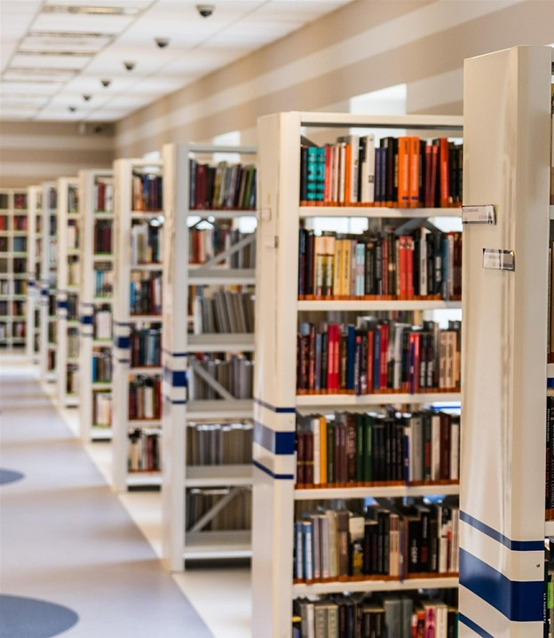 ...에는 큰 도서관이 있어요.