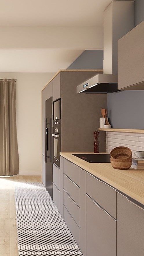 _여주를 싱크대 옆 탁자에 앉힌 지민이가 , 눈높이를 맞춰 여주를 바라본다.