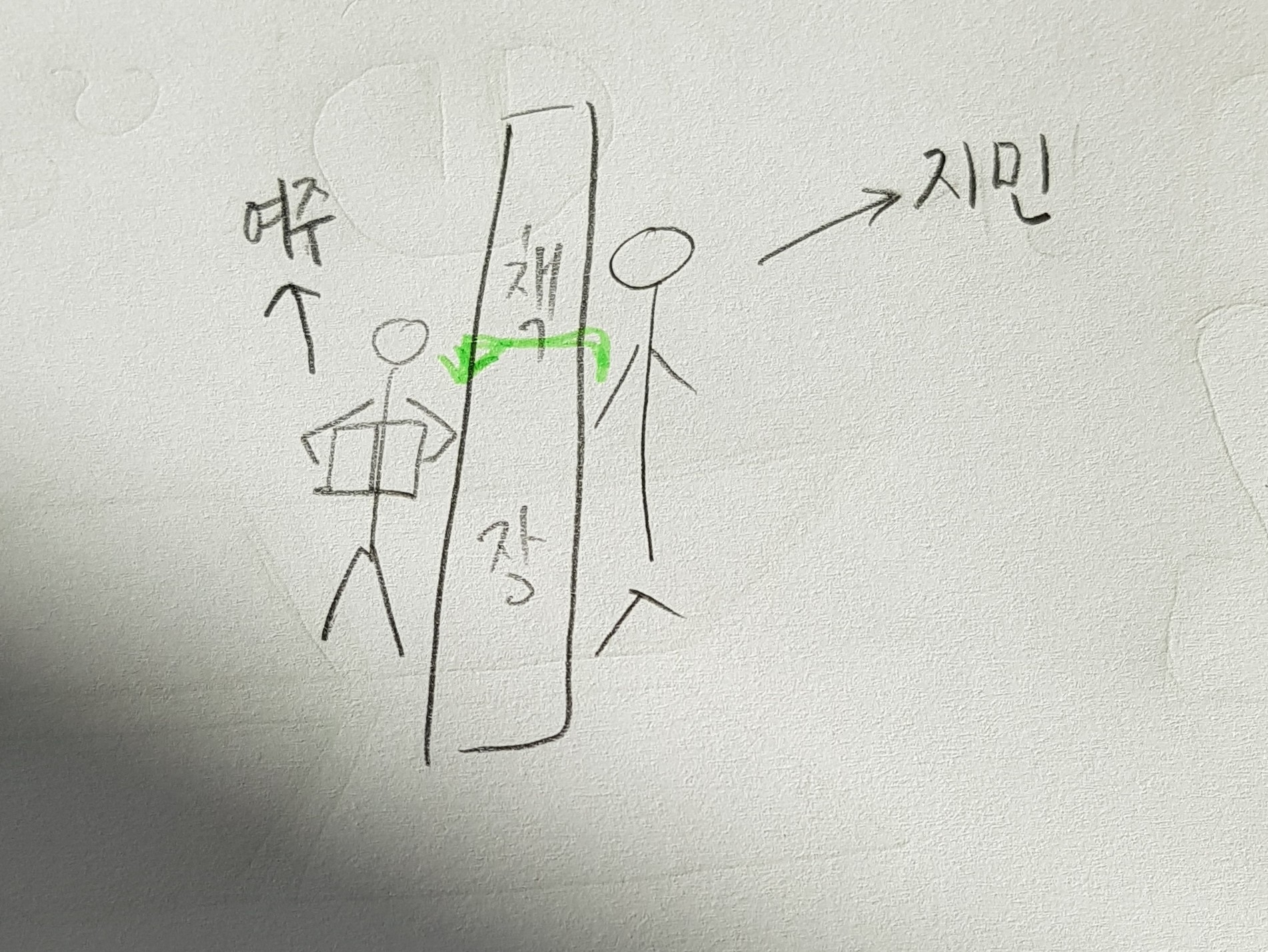 앞쪽에서 여주쪽으로 종이를 전달 해주었다