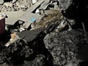 건물의 파편이 사다리를 맞고