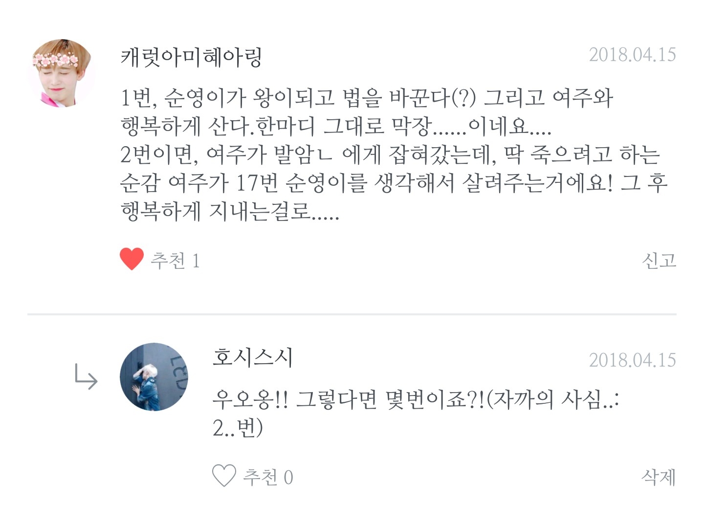 흑 슬프지만 여주와 순영은 떨어지네요..흑