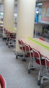 지은이와 앞 친구들은 문을 지나 배식대로 향했다.