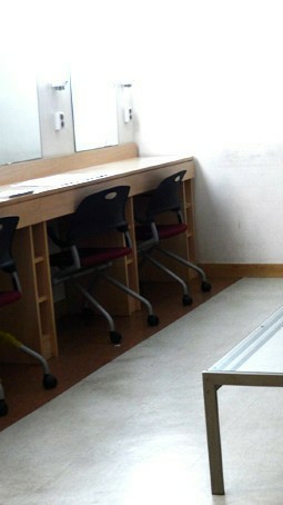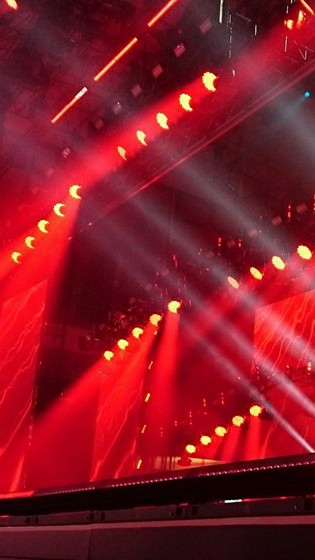 한 곳에 설치되어 있는 TV로 다른 아이돌의 리허설을 지켜본다