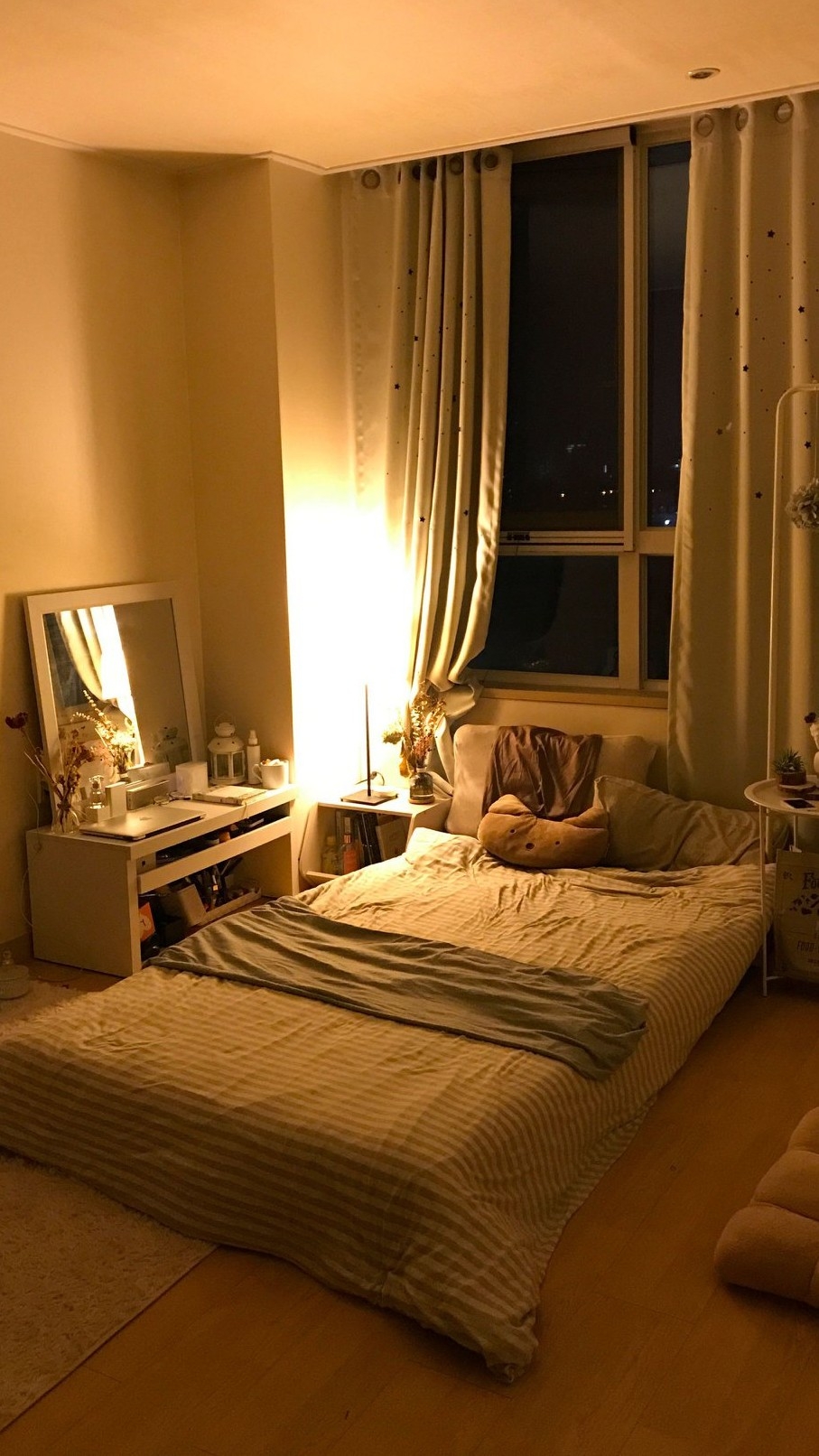 지민이 집으로 오다가 차 안에서 잠들어버린 여주에 , 지민이는 깨우지 않고 여주를 공주님 안기로 안아서 자기 방으로 데려와서 침대에 눕혔다 .