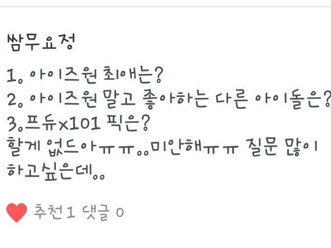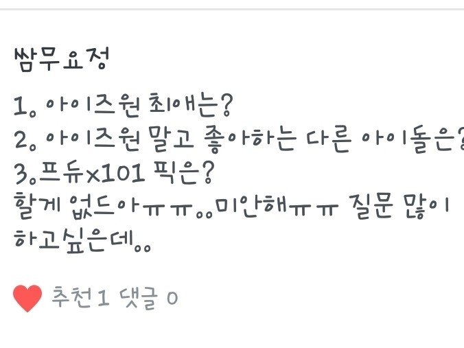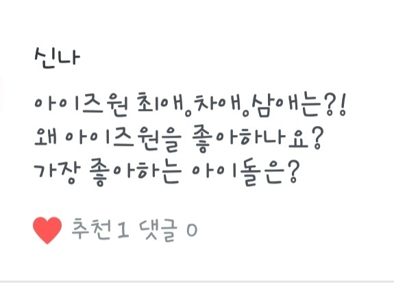 1.은비! 2.흠...요즘은 세븐틴!3.전 DSP미디어 손동표가 제 픽이에요!