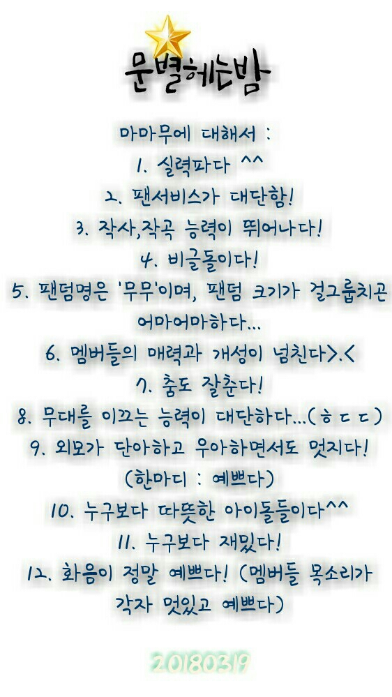 종이에 문별이 받아적었다.