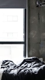 -이내 커튼을 걷어치고, 침대에 눕는 카이다.