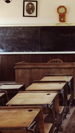 -수업도중 문이 열리는 소리에, 뒤을 돌아보는 학생들이다.
