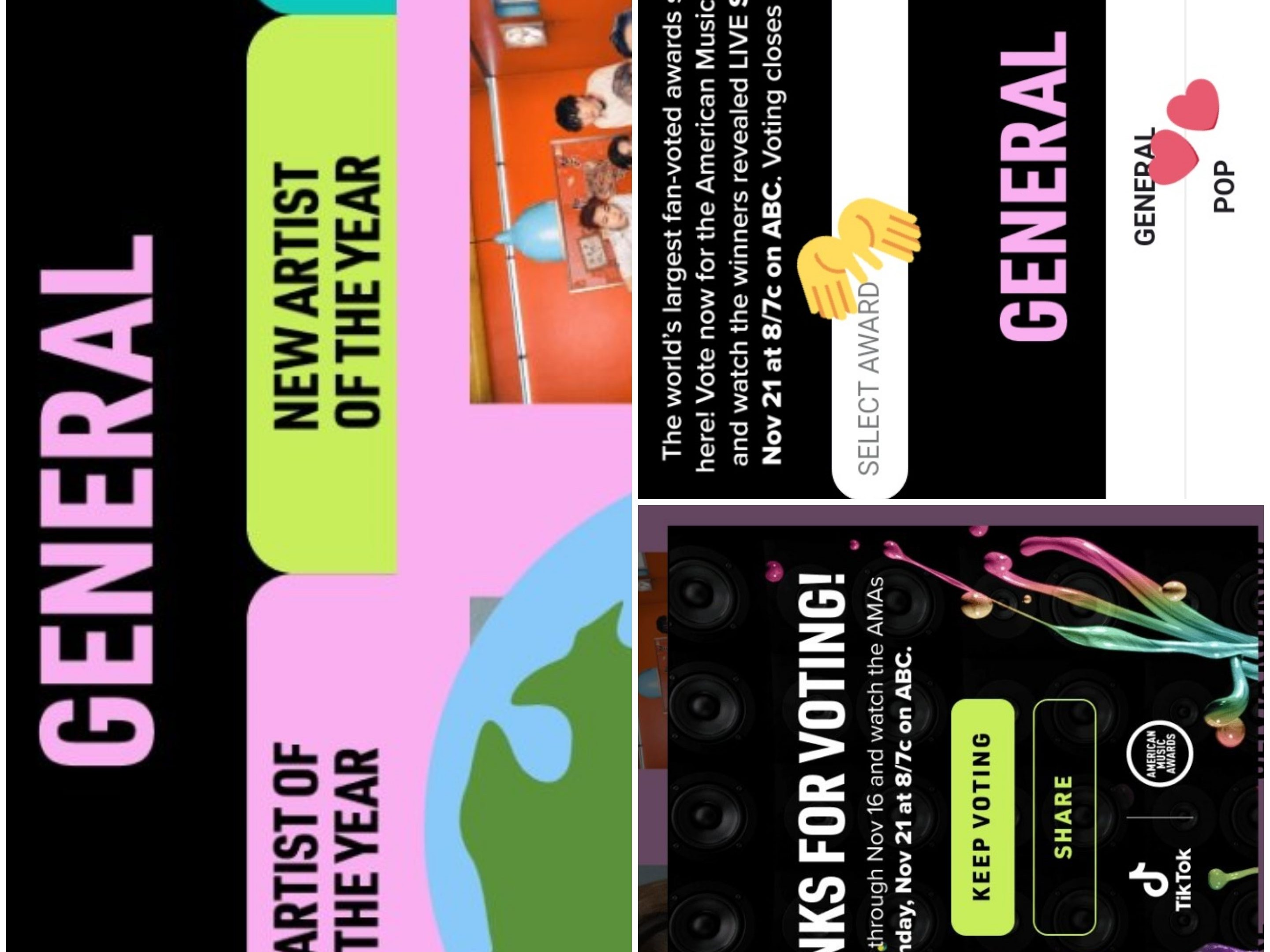 틱톡에서 링크를 클릭하면 일반적으로 '올해의 아티스트' 부문과 '특별상' 부문을 찾을 수 있습니다. 팝 부문에는 두 개의 하위 부문이 있습니다.