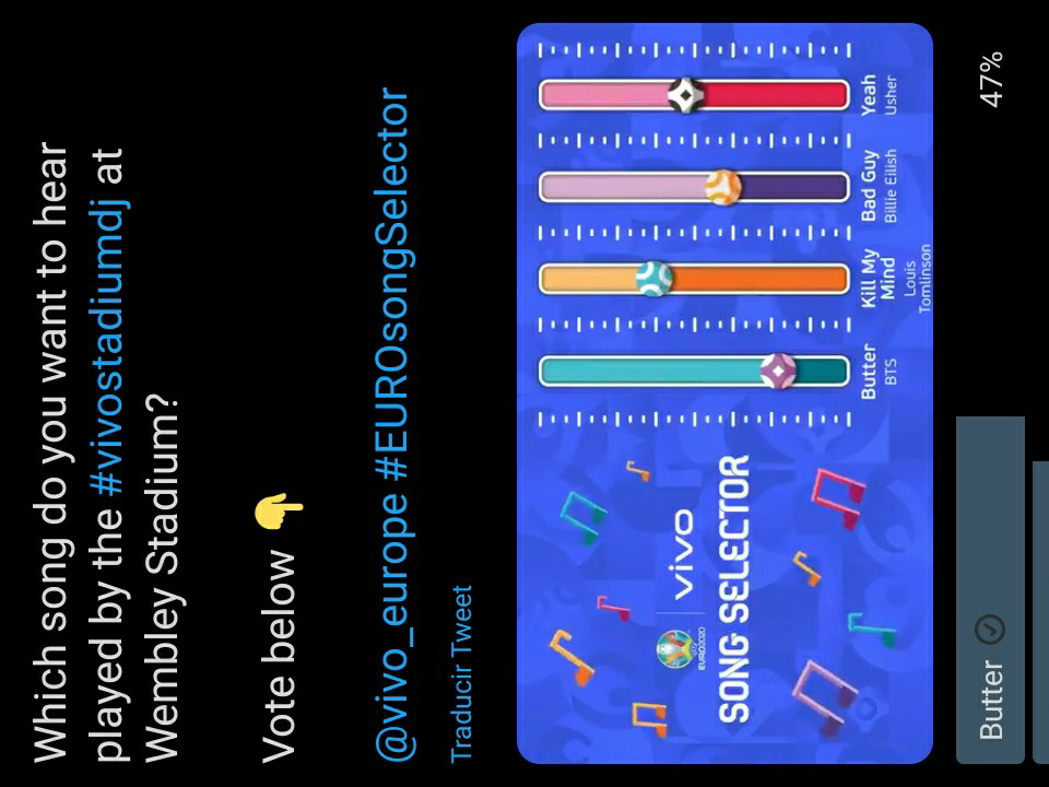 그리고 버터에게 투표해주세요. @ 기호가 위에 보이는데, 이 게시물은 UEFA EURO 2020 공식 계정이고, @는 @EURO2020입니다.