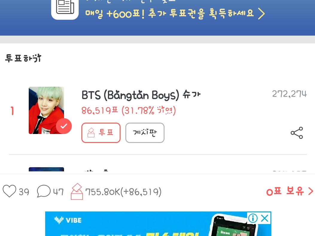 이거 윤기오빠가 1등할 수 있게 투표 좀 해주세요!!
