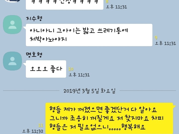 아마 이게 형들에게 보내는 처음이자 마지막 톡이 되겠지....